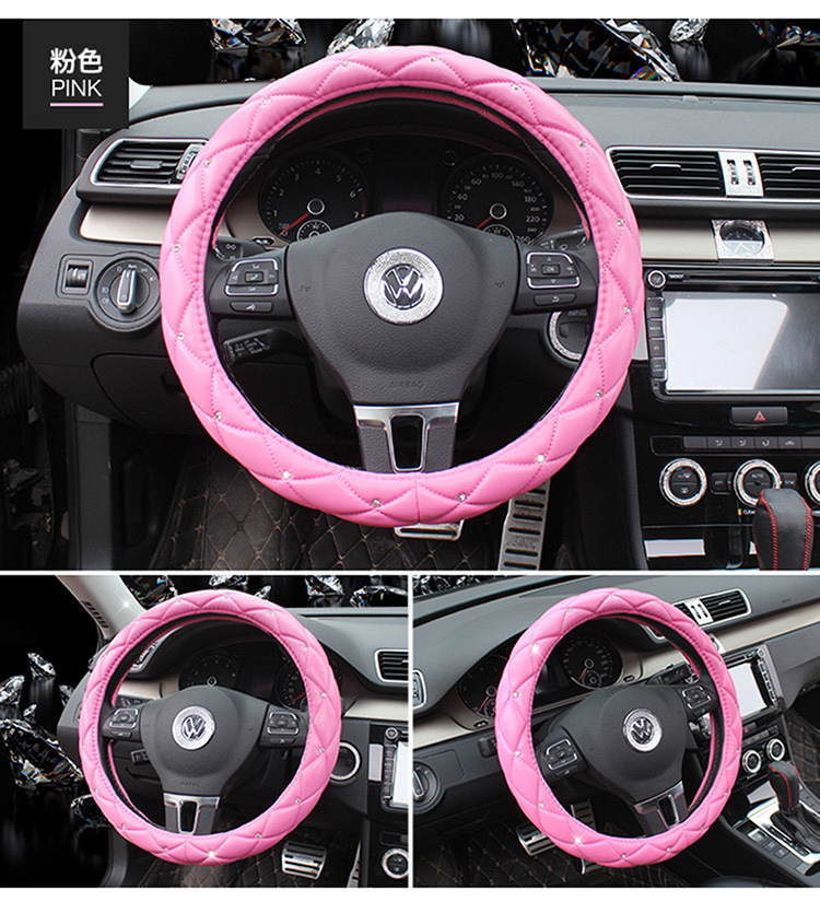 CUBREVOLANTE CUERO ROSA CON DIAMANTES